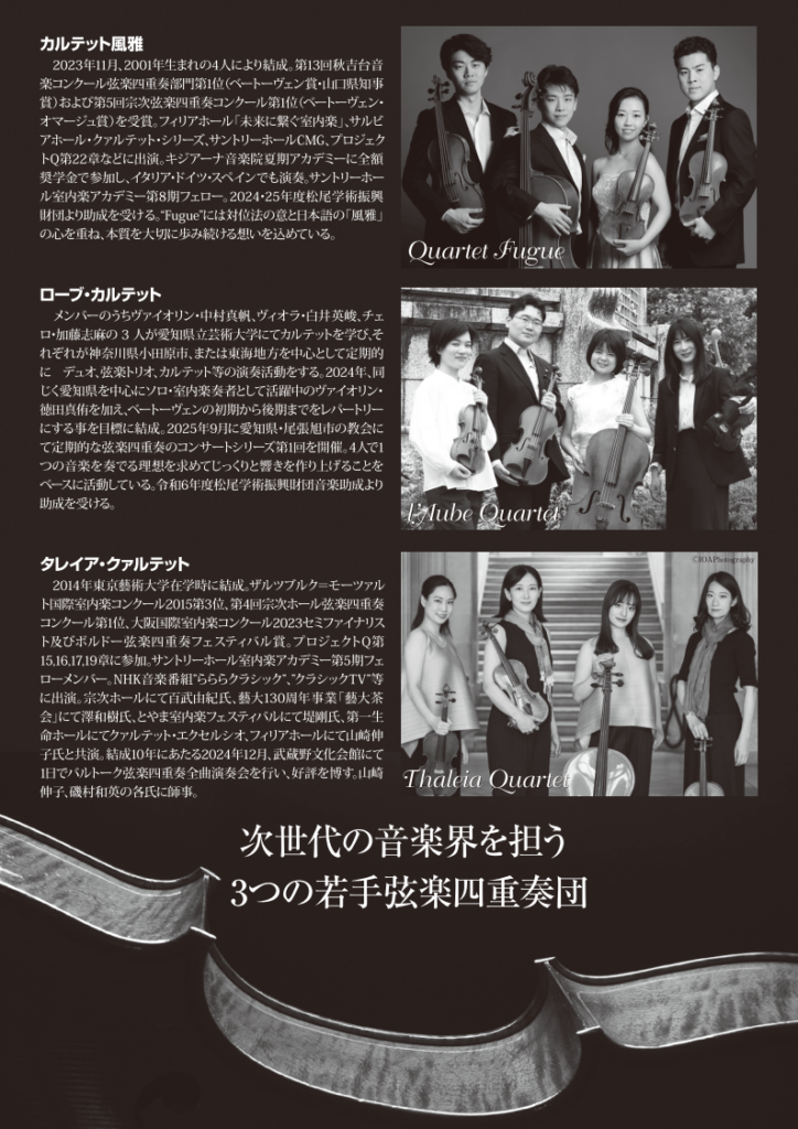 出演者:カルテット風雅、ローブ・カルテット、タレイア・クァルテット