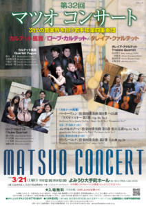 2026年3月21日(土)に、よみうり大手町ホールにてマツオコンサートが開催されます。 出演者は「カルテット風雅」「ローブ・カルテット」「タレイヤ・クァルテット」で、曲目については上記のポスターをご確認ください。 入場は […]